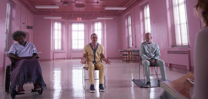“Απο το Unbreakable, επιστρέφει ο Bruce Willis στο ρόλο του David Dunn, όπως και ο Samuel L. Jackson στο ρόλο του Elijah Price, γνωστού και ως Mr. Glass. Απο το Split επιστρέφει ο James McAvoy, στο ρόλο του Kevin Wendell Crumb και τις πολλαπλές προσωπικότητες που κατοικούν μέσα του, ενώ η Anya Taylor-Joy επιστρέφει στο ρόλο της Casey Cooke, της μοναδικής φυλακισμένης που κατάφερε να επιβιώσει απο την αναμέτρηση με το Κτήνος (The Beast).