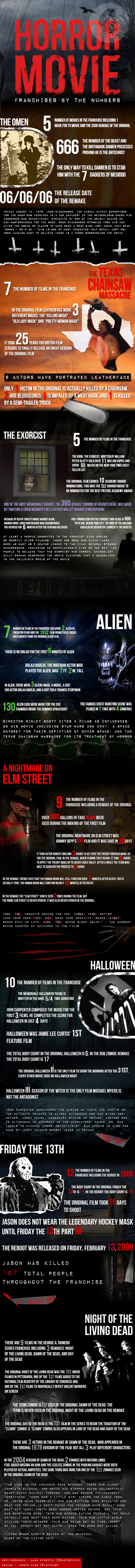 Ο Hank Sforzini και ο Joseph Bass δημιούργησαν έναν πολύ ενδιαφέρον συγκριτικό πίνακα των 8 πιο δημοφιλών franchise τρόμου. Στο πίνακα παρουσιάζονται τα στοιχεία απο τις ταινίες τρόμου με τις περισσότερες συνέχειες όπως το “Friday the 13th”, “A Nightmare on Elm Street”, “The Omen”, “Night of the Living Dead”, “Alien”, “Halloween”, “Texas Chainsaw Massacre” και “The Exorcist”.